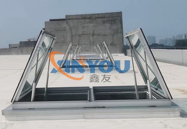 此類天窗有三種控制方式:通用控制方式、智能控制方式、智能網(wǎng)絡控制方式。以上控制方式均可消防聯(lián)動控制,與消防報警連接。適用于采光為主必要時開啟的大型生產車間、大廳、體育館等。