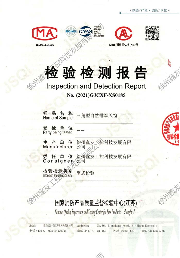 三角型電動排煙天窗檢測報(bào)告185