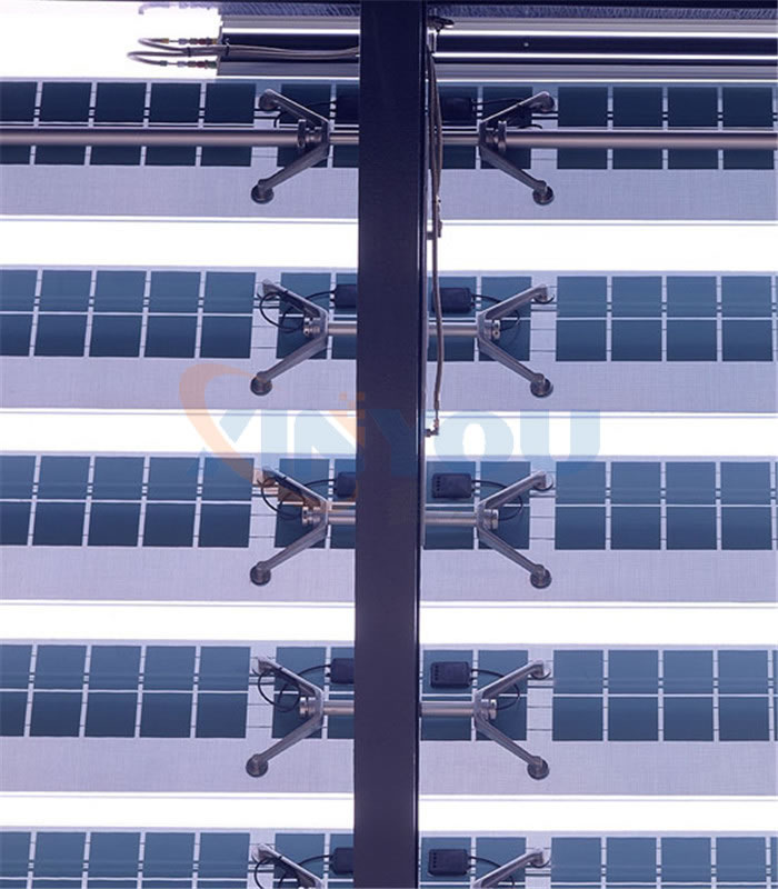 光伏百葉,能夠有效的將太陽能轉(zhuǎn)化為電能、動(dòng)能,同時(shí)百葉滿足日常的采光、遮陽這樣功能。光伏百葉環(huán)境控制單元可以預(yù)置對(duì)風(fēng)、雨、光、溫、煙等感應(yīng)參數(shù),使之通過外置感應(yīng)器,對(duì)超限值作出及時(shí)回應(yīng)進(jìn)而控制百葉動(dòng)作,完全實(shí)現(xiàn)了綠色環(huán)保節(jié)能的建筑理念。